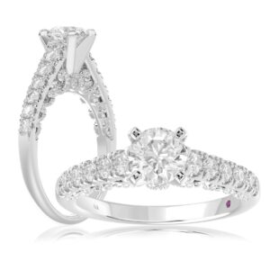 14K WHITE GOLD 1/2CT ROUND DIAMOND LADIES SEMI MOUNT RING(CENTER STONE MOUNT ROUND DIAMOND 1CT)