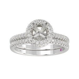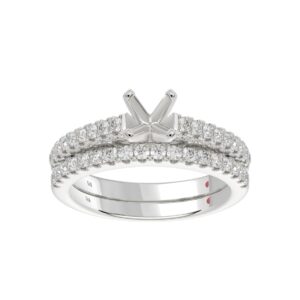 14K WHITE GOLD 1/2CT ROUND DIAMOND LADIES BRIDAL SET(CENTER STONE MOUNT ROUND DIAMOND 1CT)