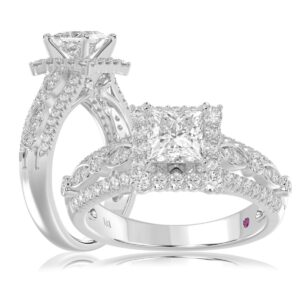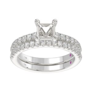 14K WHITE GOLD 1/2CT ROUND DIAMOND LADIES SEMI MOUNT BRIDAL SET(CENTER STONE MOUNT PRINCESS DIAMOND 1CT)