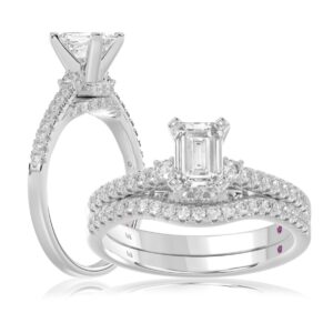 14K WHITE GOLD 1/2CT ROUND DIAMOND LADIES SEMI MOUNT BRIDAL SET(CENTER STONE MOUNT EMERALD DIAMOND 1CT