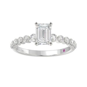 14K WHITE GOLD 1/2CT ROUND DIAMOND LADIES SEMI MOUNT RING(CENTER STONE MOUNT EMERALD DIAMOND 1CT)