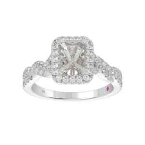 14K WHITE GOLD 1/2CT ROUND DIAMOND LADIES SEMI MOUNT RING(CENTER STONE MOUNT PRINCESS DIAMOND 1CT)