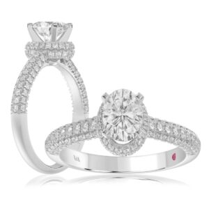 14K WHITE GOLD 1/2CT ROUND DIAMOND LADIES SEMI MOUNT RING(CENTER STONE MOUNT OVAL DIAMOND 1CT)
