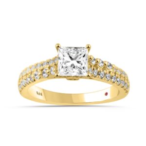 18K YELLOW GOLD 1 1/2CT ROUND/PRINCESS DIAMOND SEMI MOUNT LADIES RING (CENTER STONE PRINCESS DIAMOND 1CT)