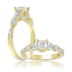 18K YELLOW GOLD 1 1/4CT ROUND/PEAR/PRINCESS DIAMOND LADIES RING (CENTER STONE PRINCESS DIAMOND 1/2CT)