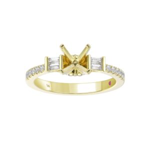 18K YELLOW GOLD 1 1/3CT BAGUETTE/PRINCESS DIAMOND LADIES SEMI MOUNT RING(CENTER STONE PRINCESS DIAMOND 1CT)