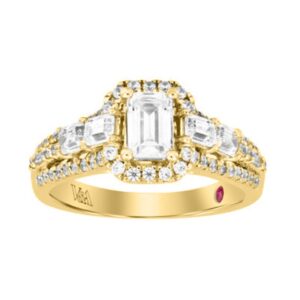 18K YELLOW GOLD 1 3/4CT ROUND/EMERALD/BAGUETTE/PRINCESS DIAMOND SEMI MOUNT LADIES RING (CENTER STONE PRINCESS DIAMOND 1.00CT)