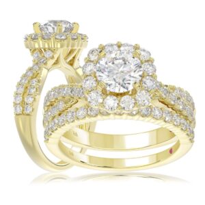 18K YELLOW GOLD 1/2CT ROUND DIAMOND SEMI MOUNT LADIES BRIDAL SET (CENTER STONE PRINCESS DIAMOND 1.00CT)