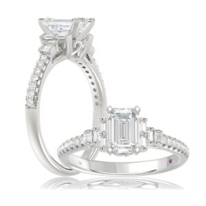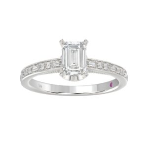 14K WHITE GOLD 1/4CT ROUND/BAGUETTE DIAMOND LADIES SEMI MOUNT RING (CENTER STONE EMERALD DIAMOND 1CT)