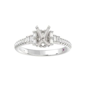14K WHITE GOLD 1/4CT ROUND/BAGUETTE DIAMOND LADIES SEMI MOUNT RING(CENTER STONE MOUNT EMERALD DIAMOND 1CT)