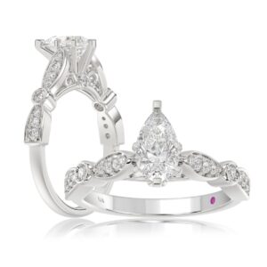 14K WHITE GOLD 1/4CT ROUND/PEAR DIAMOND LADIES SEMI MOUNT RING(CENTER STONE MOUNT PEAR DIAMOND 1CT)