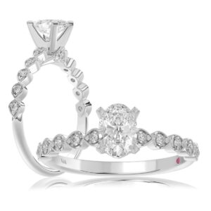 14K WHITE GOLD 1/6CT ROUND DIAMOND LADIES SEMI MOUNT RING(CENTER STONE MOUNT OVAL DIAMOND 1CT)