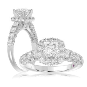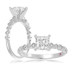 14K WHITE GOLD 1CT ROUND DIAMOND LADIES SEMI MOUNT BRIDAL SET(CENTER STONE MOUNT PRINCESS DIAMOND 1CT)