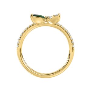 14K YELLOW GOLD 1/3CT ROUND/MARQUISE/PEAR DIAMOND LADIES FASHION RING( COLOR STONE MARQUISE GREEN EMERALD DIAMOND/PEAR 1.45CT/ 12 STONE)