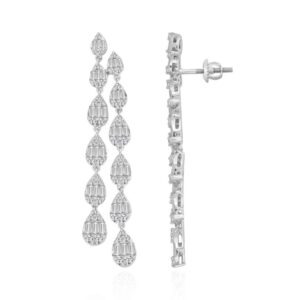 14K WHITE GOLD 1CT ROUND/BAGUETTE DIAMOND LADIES EARRINGS