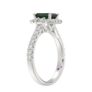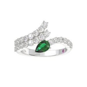 14K WHITE GOLD 1CT ROUND/EMERALD/PEAR DIAMOND LADIES RING(COLOR STONE GREEN EMERALD DIAMOND 1/4CT)