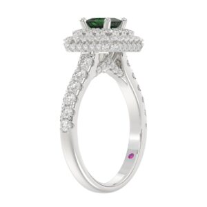 14K WHITE GOLD 1 1/5CT ROUND/OVAL DIAMOND LADIES RING(COLOR STONE OVAL GREEN EMERALD DIAMOND 3/4CT)
