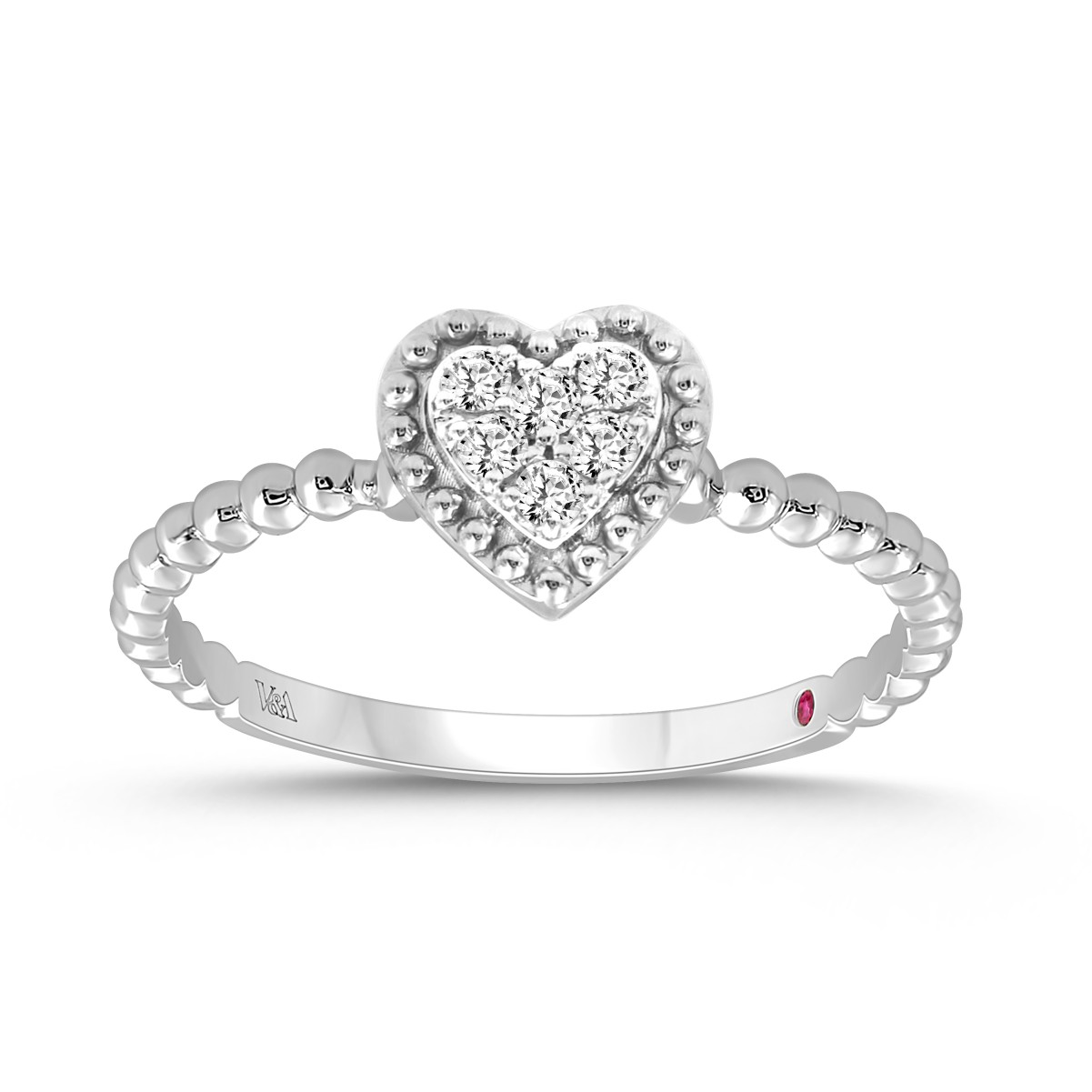 10K WHITE GOLD 1/10CT ROUND DIAMOND PINK SAPPHIRE DIAMOND LADIES RING