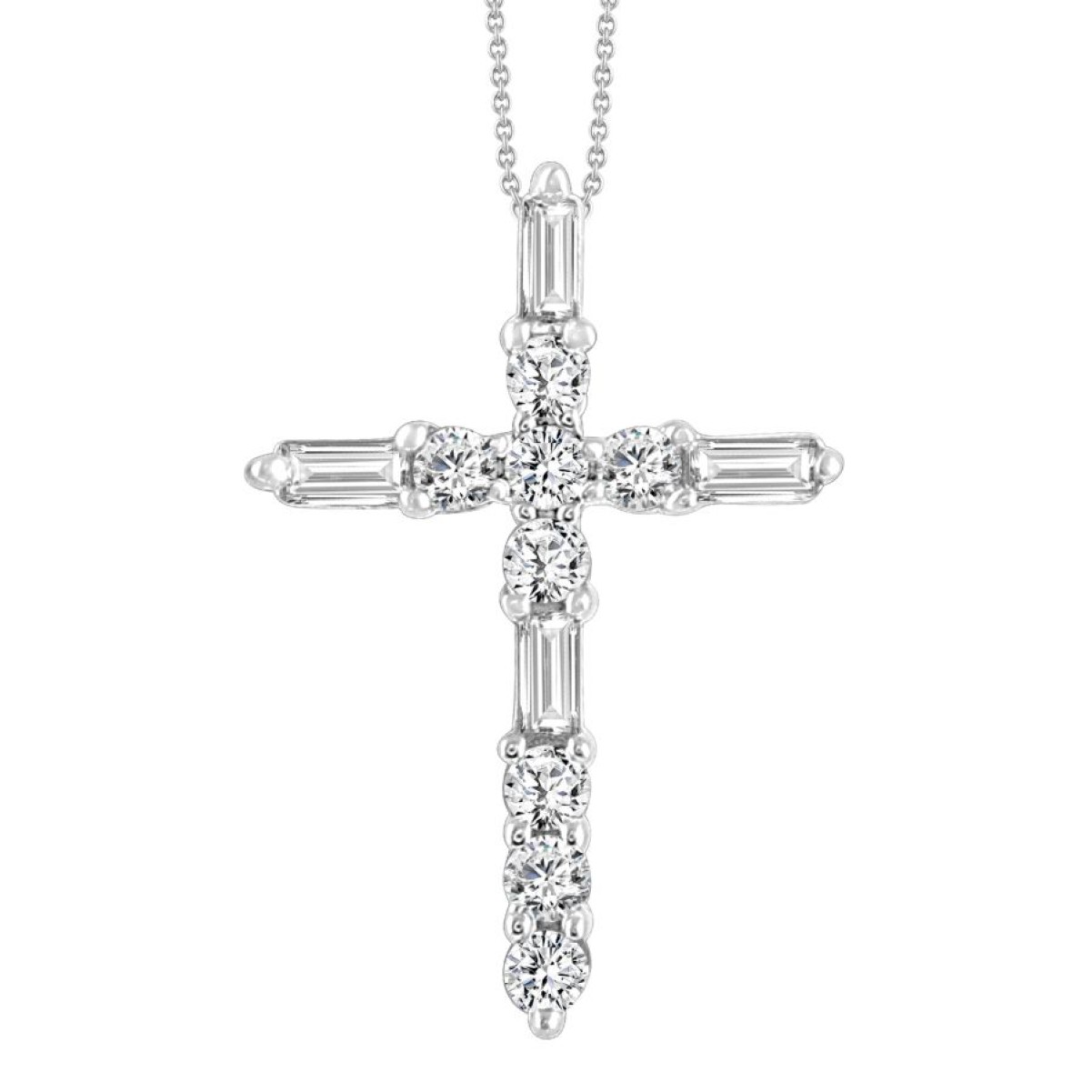 10K WHITE GOLD 1/4CT ROUND/BAGUETTE DIAMOND LADIES PENDANT WITH CHAIN
