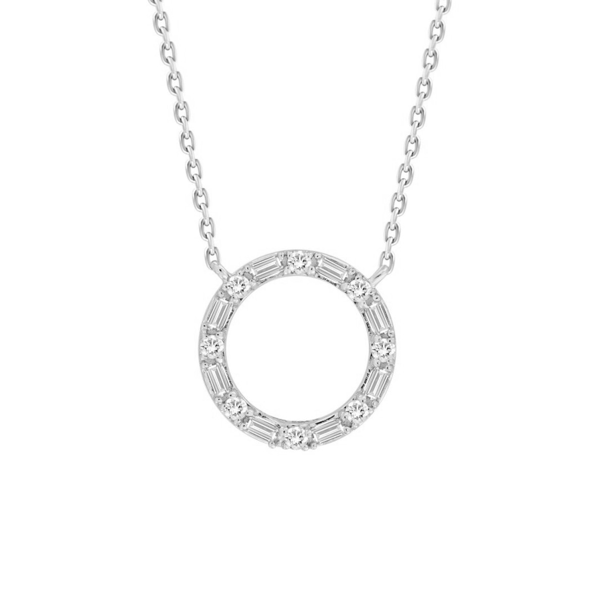 10K WHITE GOLD 1/5CT ROUND/BAGUETTE DIAMOND LADIES NECKLACE