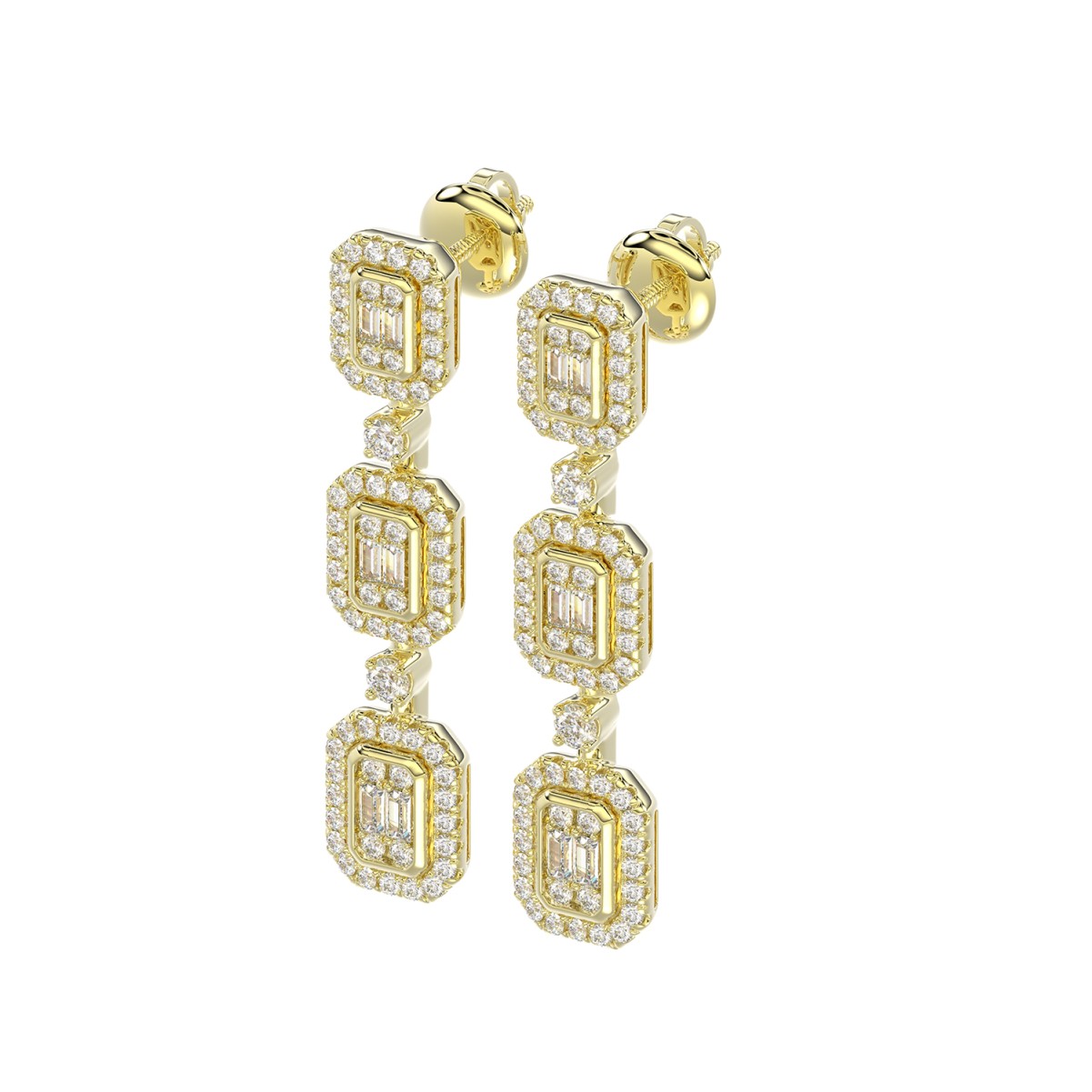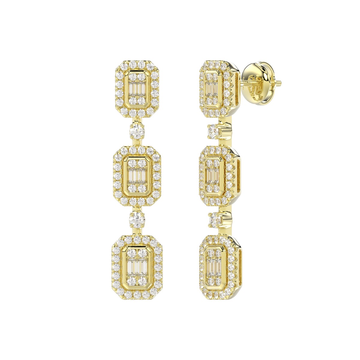 14K 1CT YELLOW GOLD ROUND/BAGUETTE DIAMOND LADIES EARRINGS