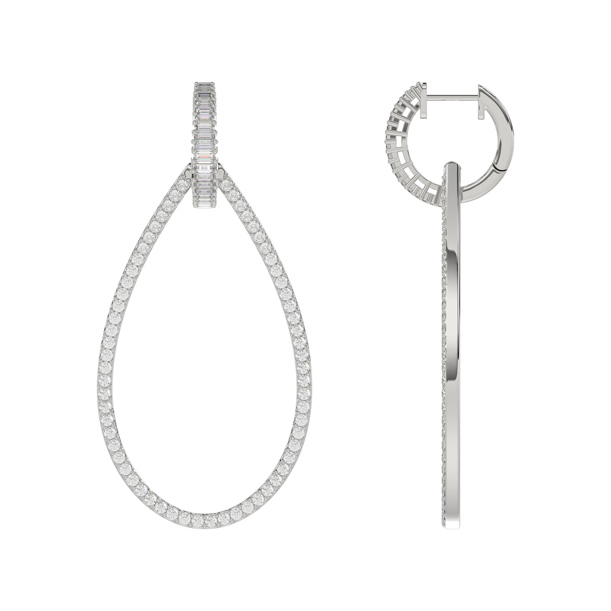 14K WHITE GOLD 1 1/2CT ROUND/BAGUETTE DIAMOND LADIES HOOP EARRINGS
