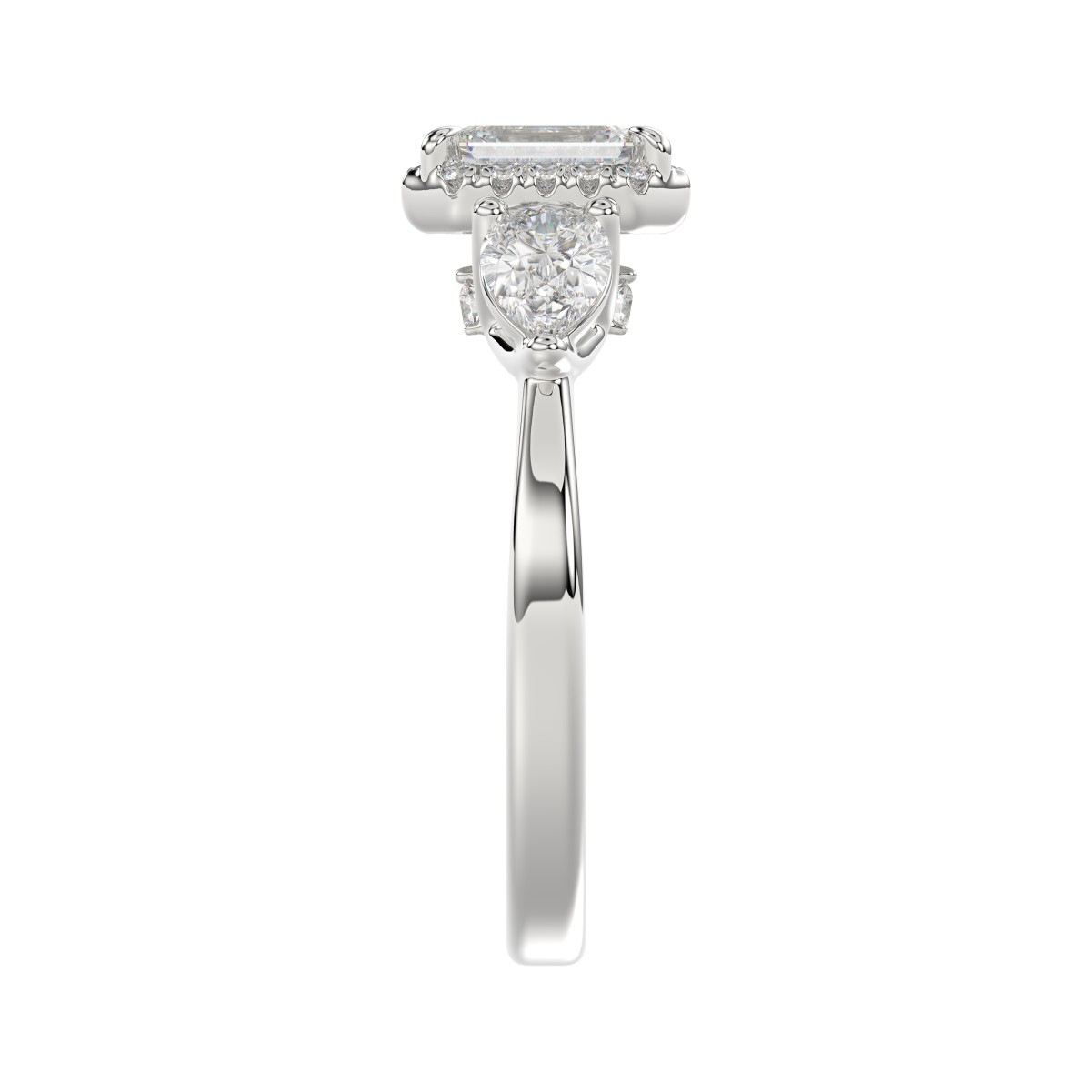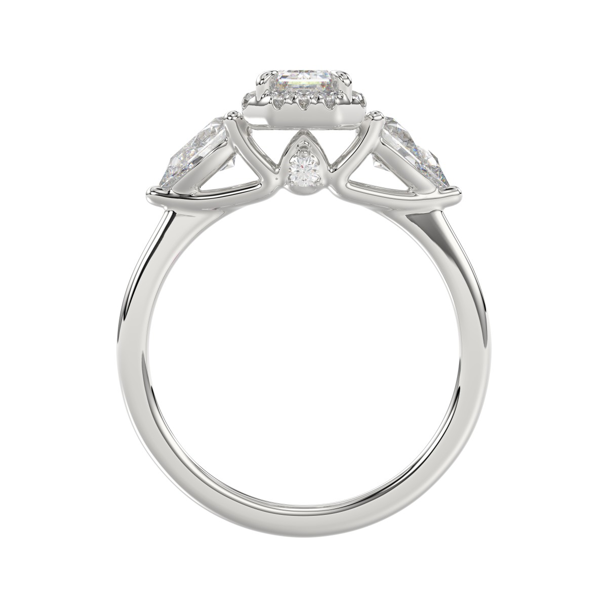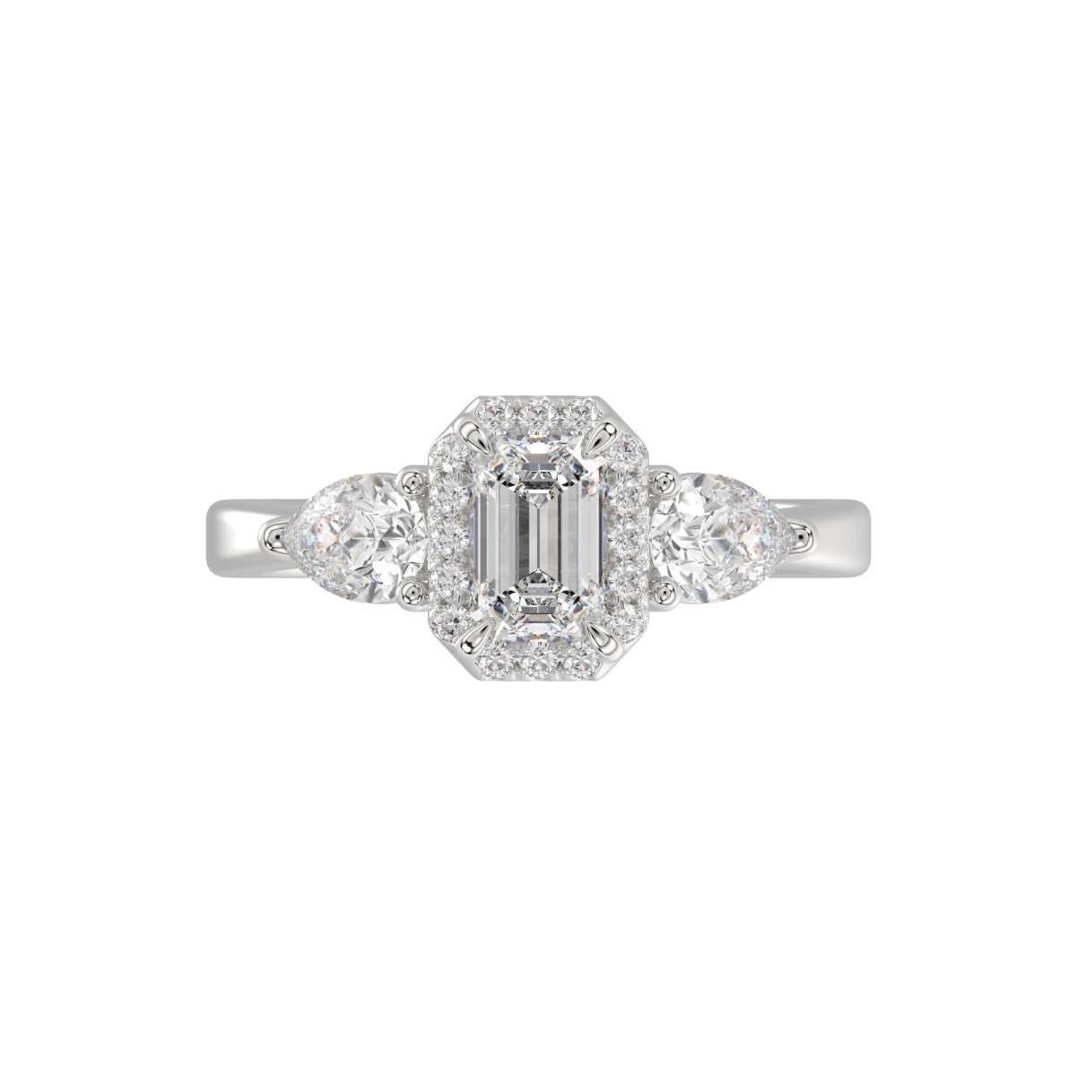 14K WHITE GOLD 1 1/2CT ROUND/PEAR/EMERALD DIAMOND LADIES RING(CENTER STONE EMERALD DIAMOND 3/4 CT / 2 SIDE STONE PEAR DIAMOND 1/3 CT)