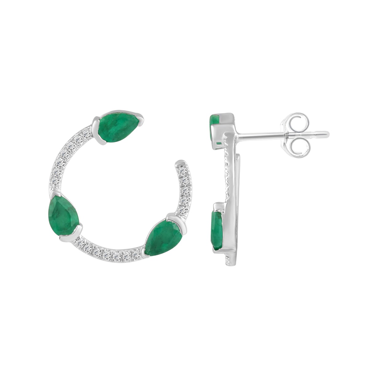 14K WHITE GOLD 1 1/3CT ROUND/PEAR DIAMOND LADIES EARRINGS(COLOR STONE PEAR GREEN EMERALD DIAMOND 1 1/5CT)
