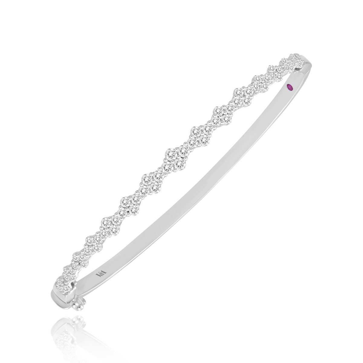 14K WHITE GOLD 1 1/3CT ROUND/PINK SAPPHIRE DIAMOND LADIES BANGLE
