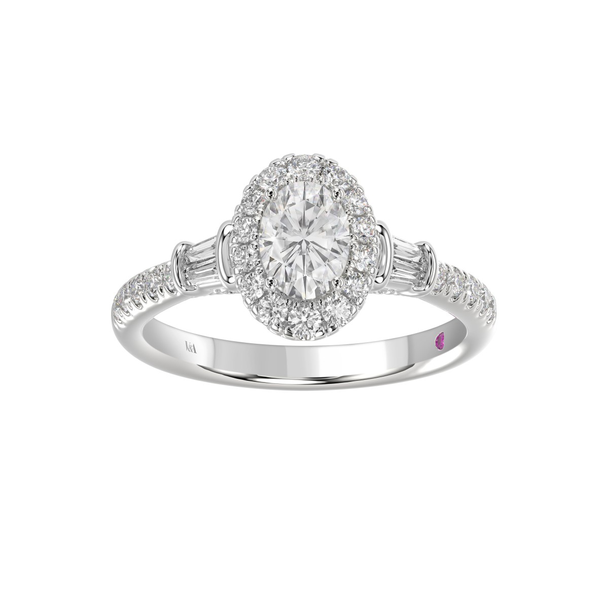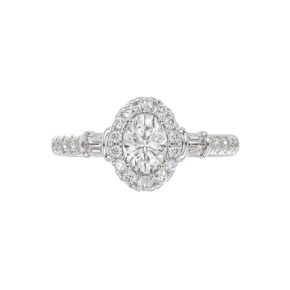 14K WHITE GOLD 1 1/4CT ROUND/BAGUETTE/OVAL DIAMOND LADIES RING(CENTER STONE OVAL DIAMOND 3/4CT)