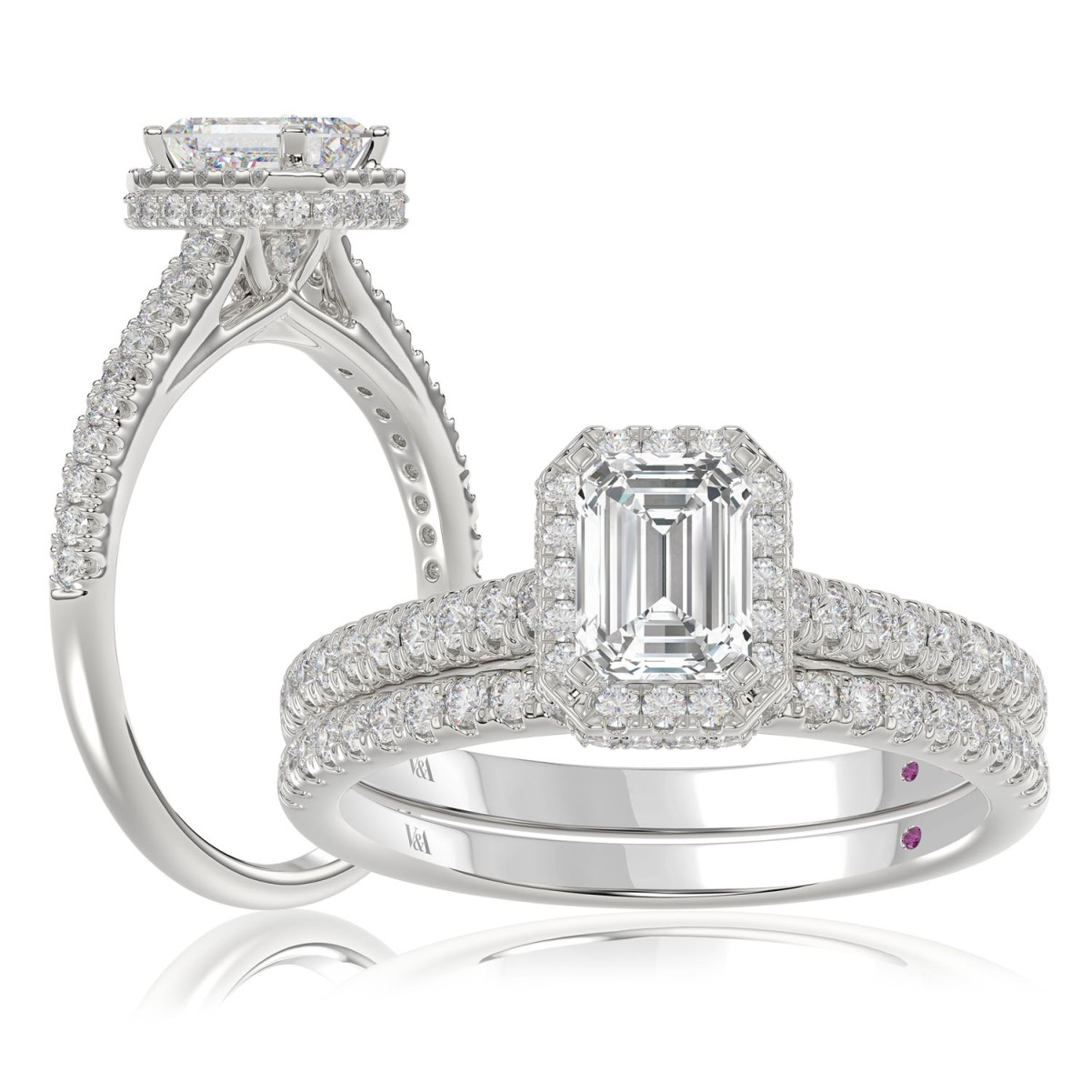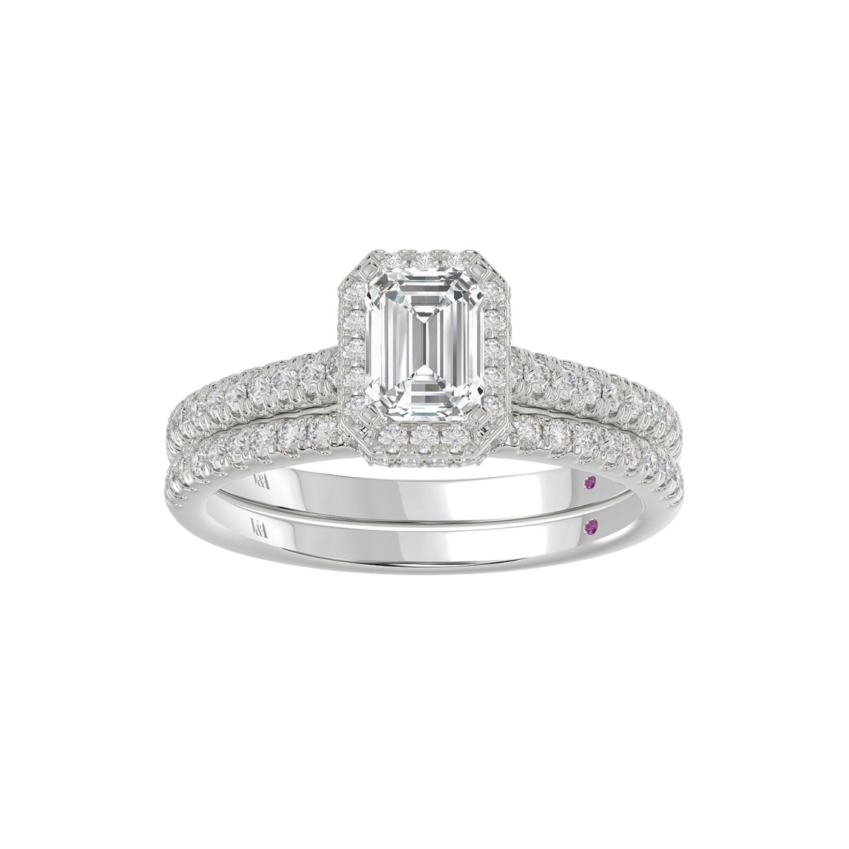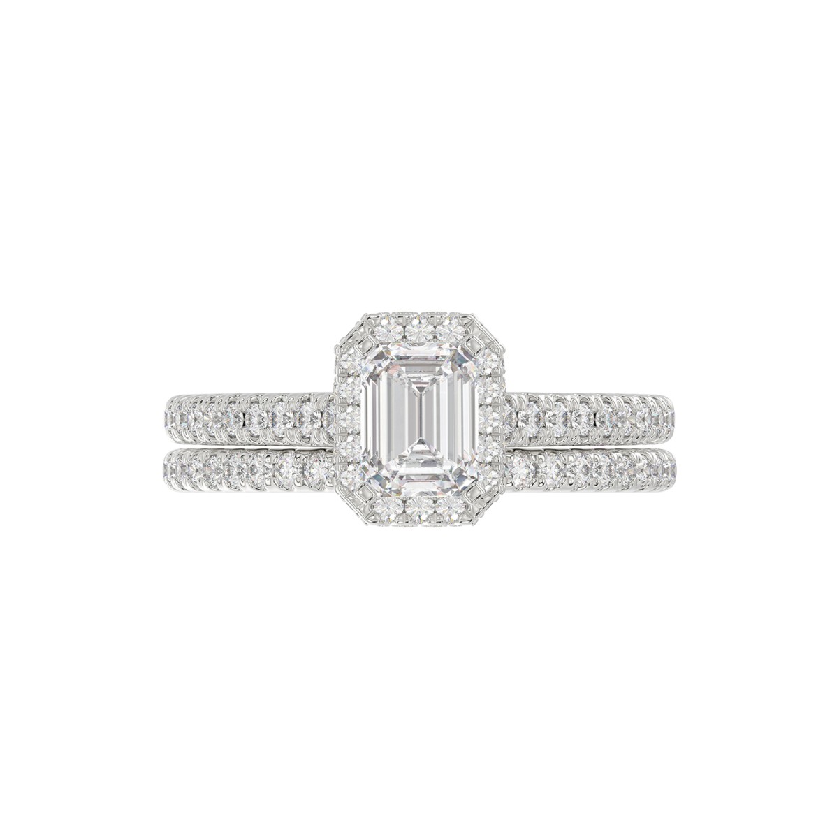 14K WHITE GOLD 1 1/4CT ROUND/EMERALD DIAMOND LADIES BRIDAL SET(CENTER STONE EMERALD DIAMOND 3/4CT)