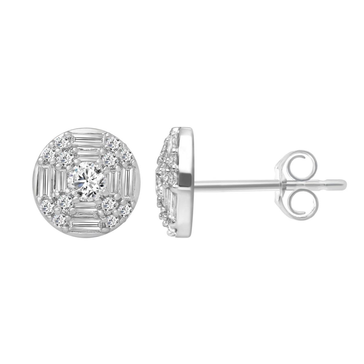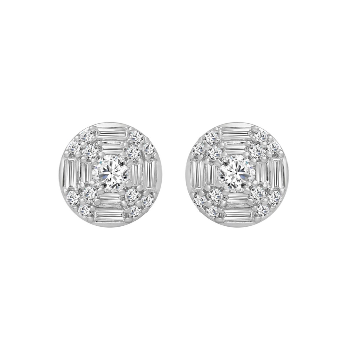 14K WHITE GOLD 1/2CT ROUND/BAGUETTE DIAMOND LADIES EARRINGS