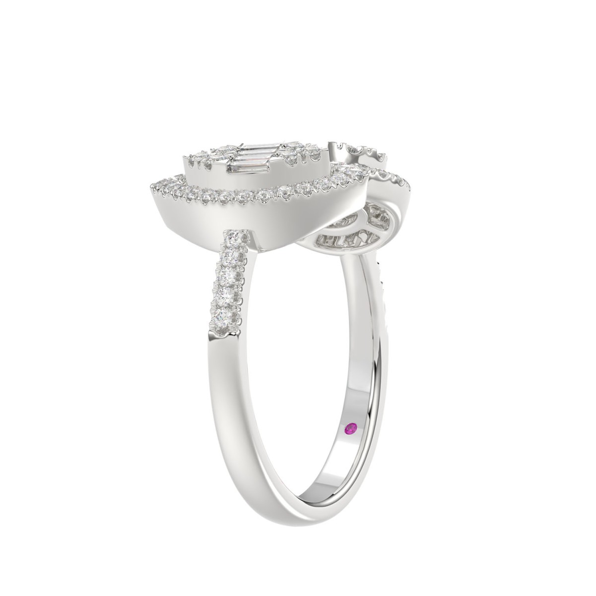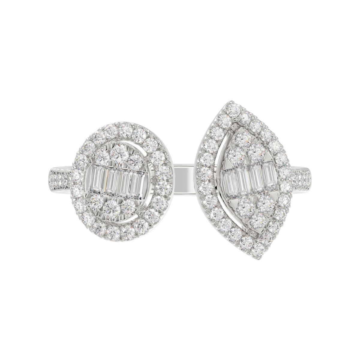 14K WHITE GOLD 1/2CT ROUND/BAGUETTE DIAMOND LADIES FASHION RING
