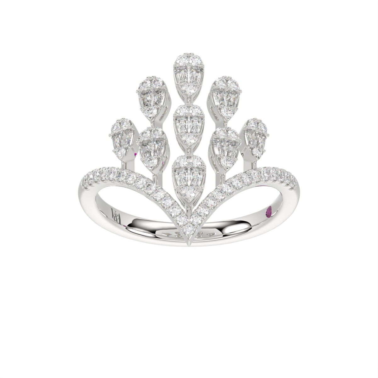 14K WHITE GOLD 1/2CT ROUND/BAGUETTE DIAMOND LADIES FASHION RING