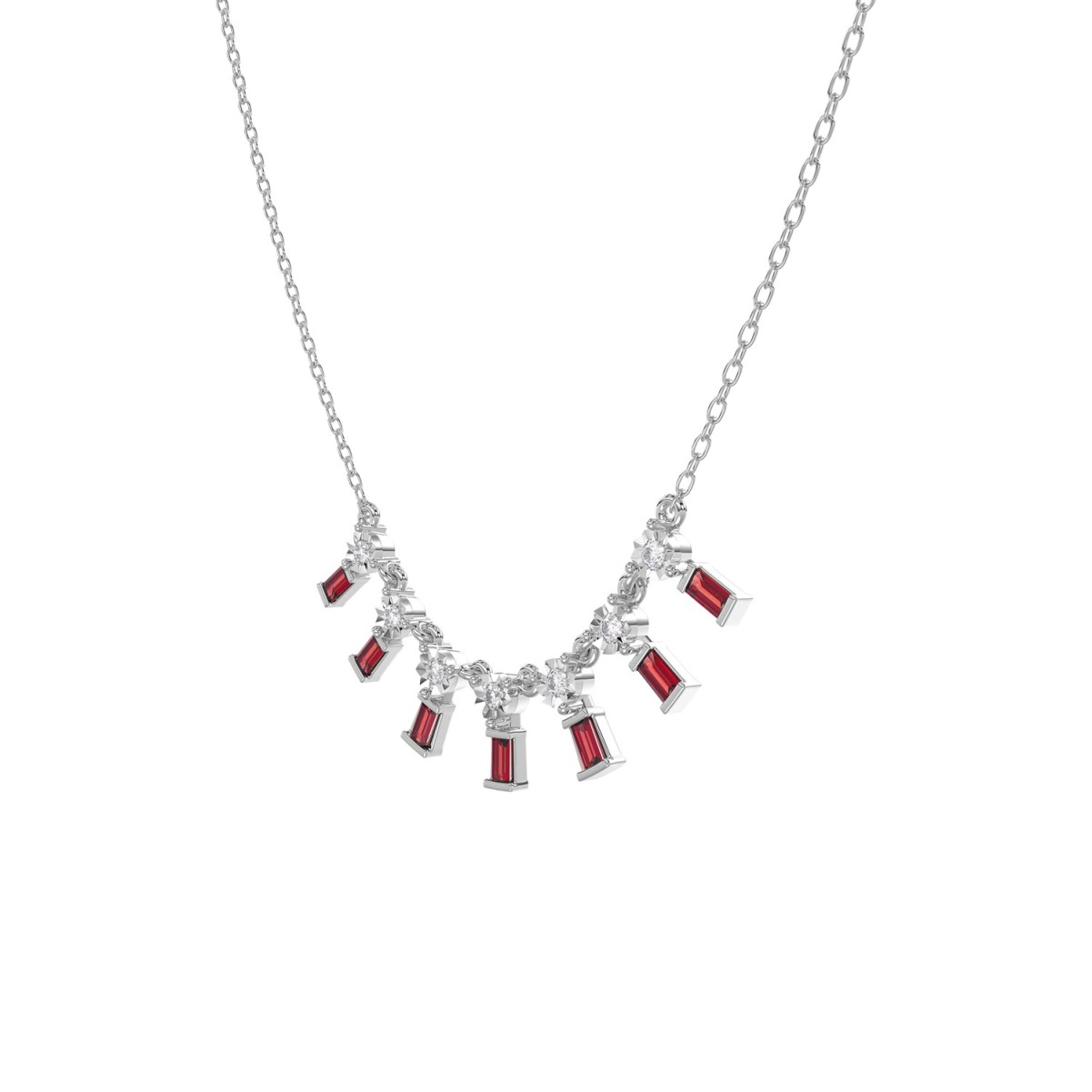 14K WHITE GOLD 1/2CT ROUND/BAGUETTE DIAMOND LADIES NECKLACE (RUBY DIAMOND 3/8CT)