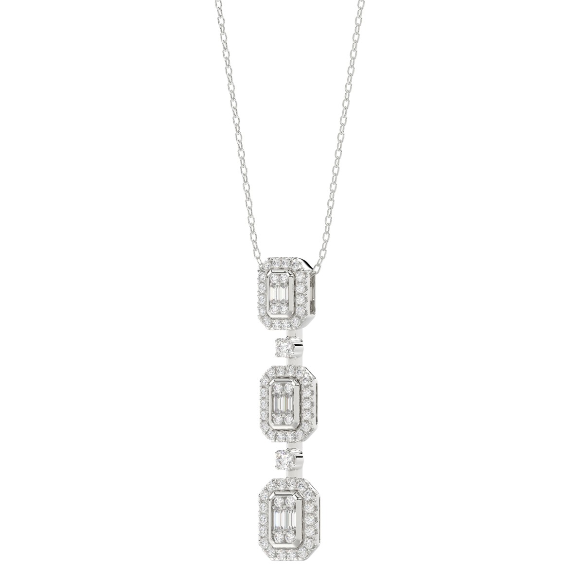 14K WHITE GOLD 1/2CT ROUND/BAGUETTE DIAMOND LADIES PENDANT WITH CHAIN
