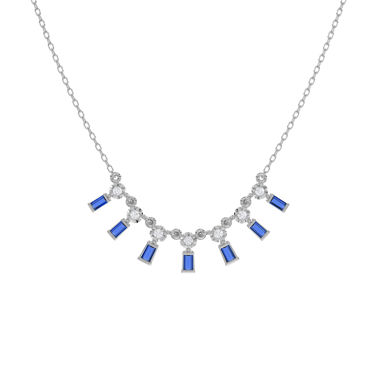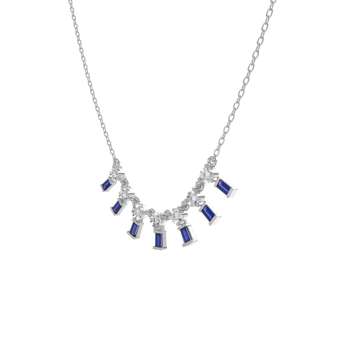 14K WHITE GOLD 1/2CT ROUND/BAGUETTE/PINK SAPPHIRE DIAMOND LADIES NECKLACE