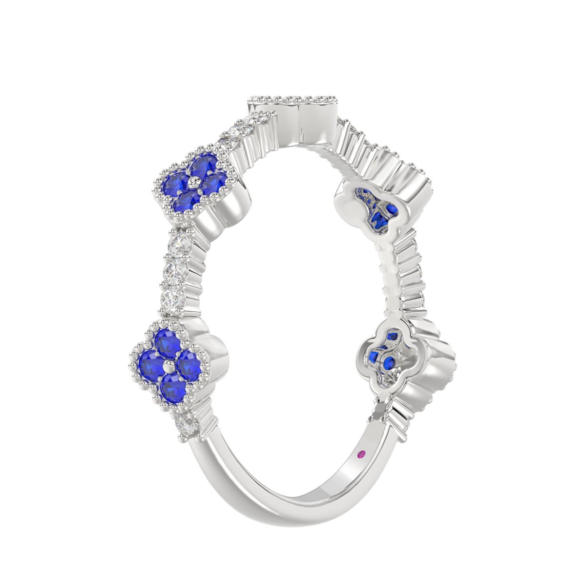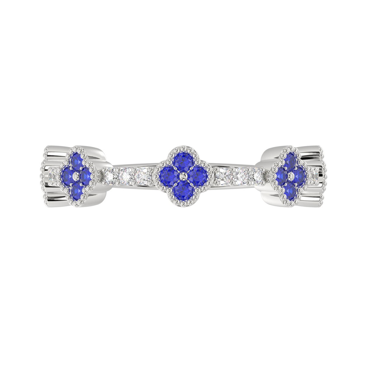 14K WHITE GOLD 1/2CT ROUND DIAMOND LADIES BAND (BLUE SAPPHIRE ROUND DIAMOND 1/3CT)