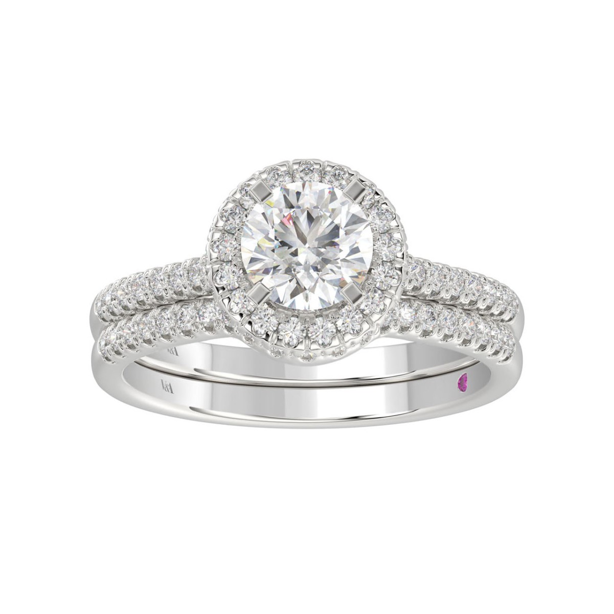 14K WHITE GOLD 1/2CT ROUND DIAMOND LADIES BRIDAL SET(CENTER STONE MOUNT ROUND DIAMOND 1CT)