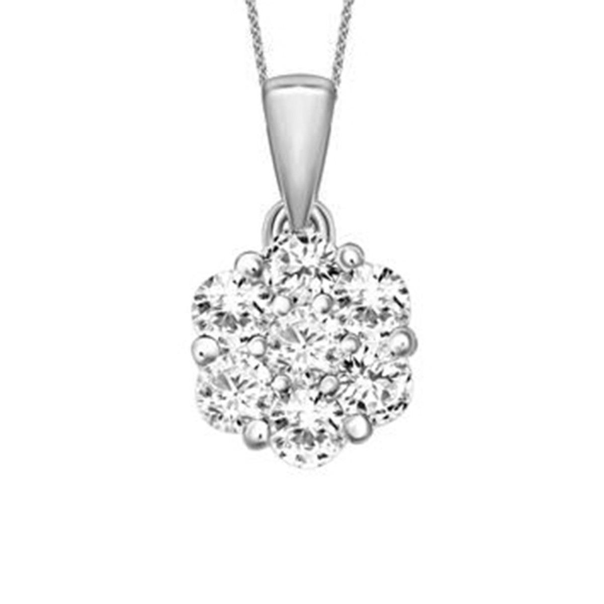14K WHITE GOLD 1/2CT ROUND DIAMOND LADIES FLOWER PENDANT WITH CHAIN