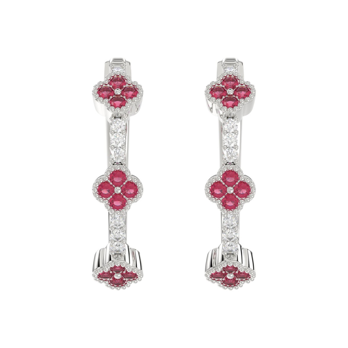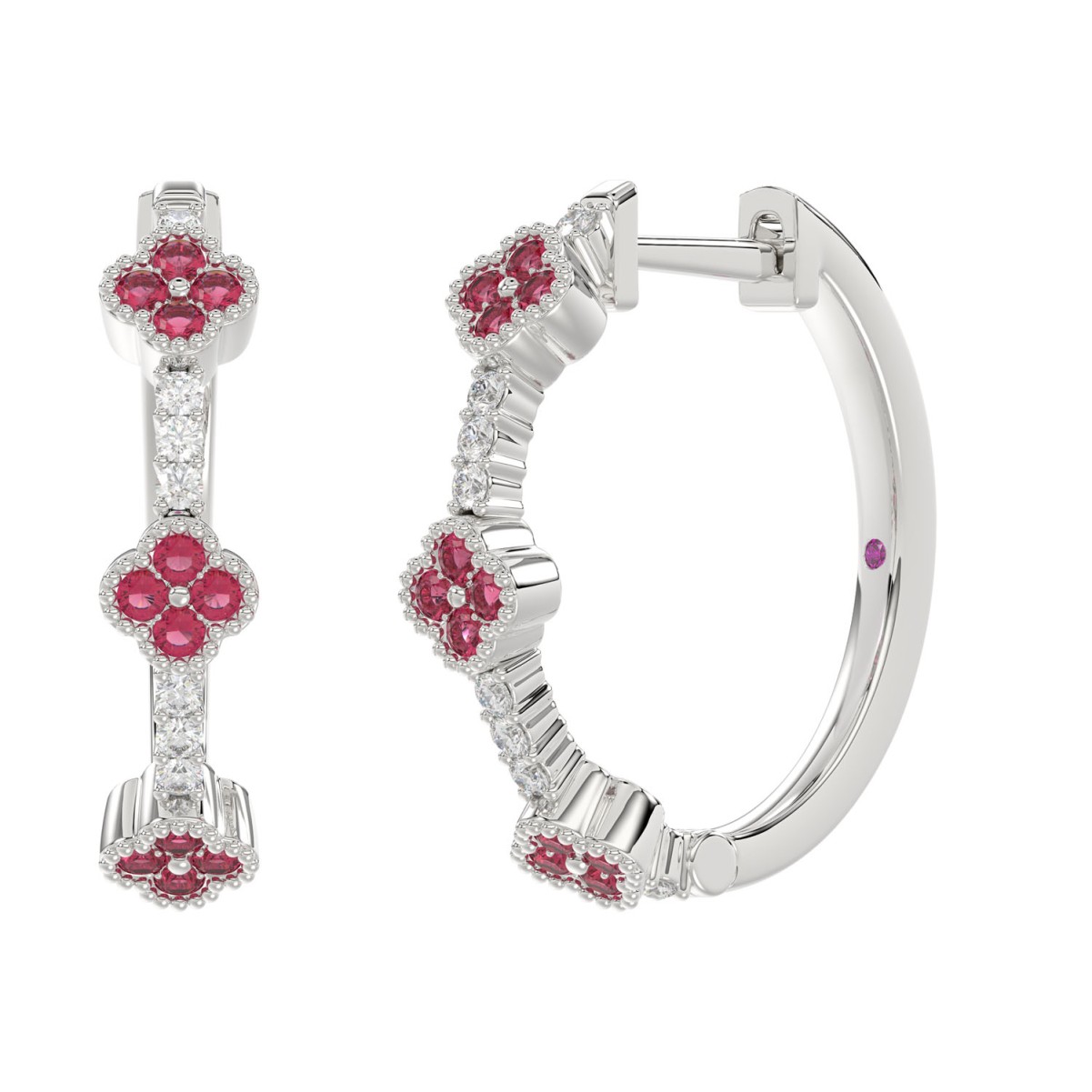 14K WHITE GOLD 1/2CT ROUND DIAMOND LADIES HOOP EARRINGS (RUBY DIAMOND 1/3CT)