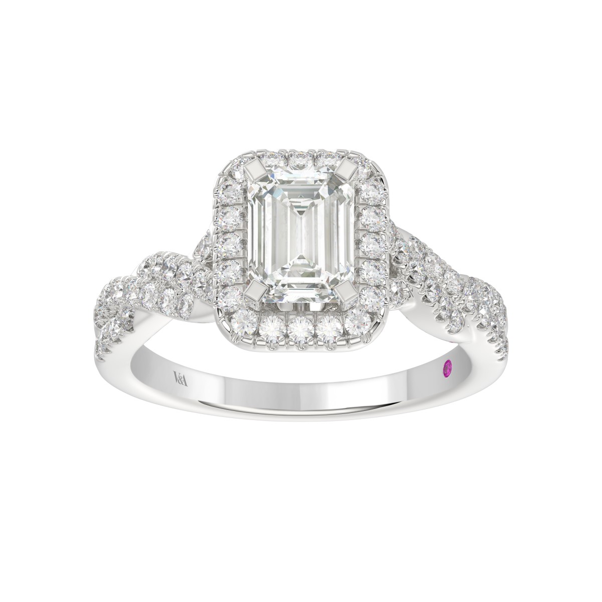 14K WHITE GOLD 1/2CT ROUND DIAMOND LADIES SEMI MOUNT RING(CENTER STONE MOUNT EMERALD DIAMOND 1CT)