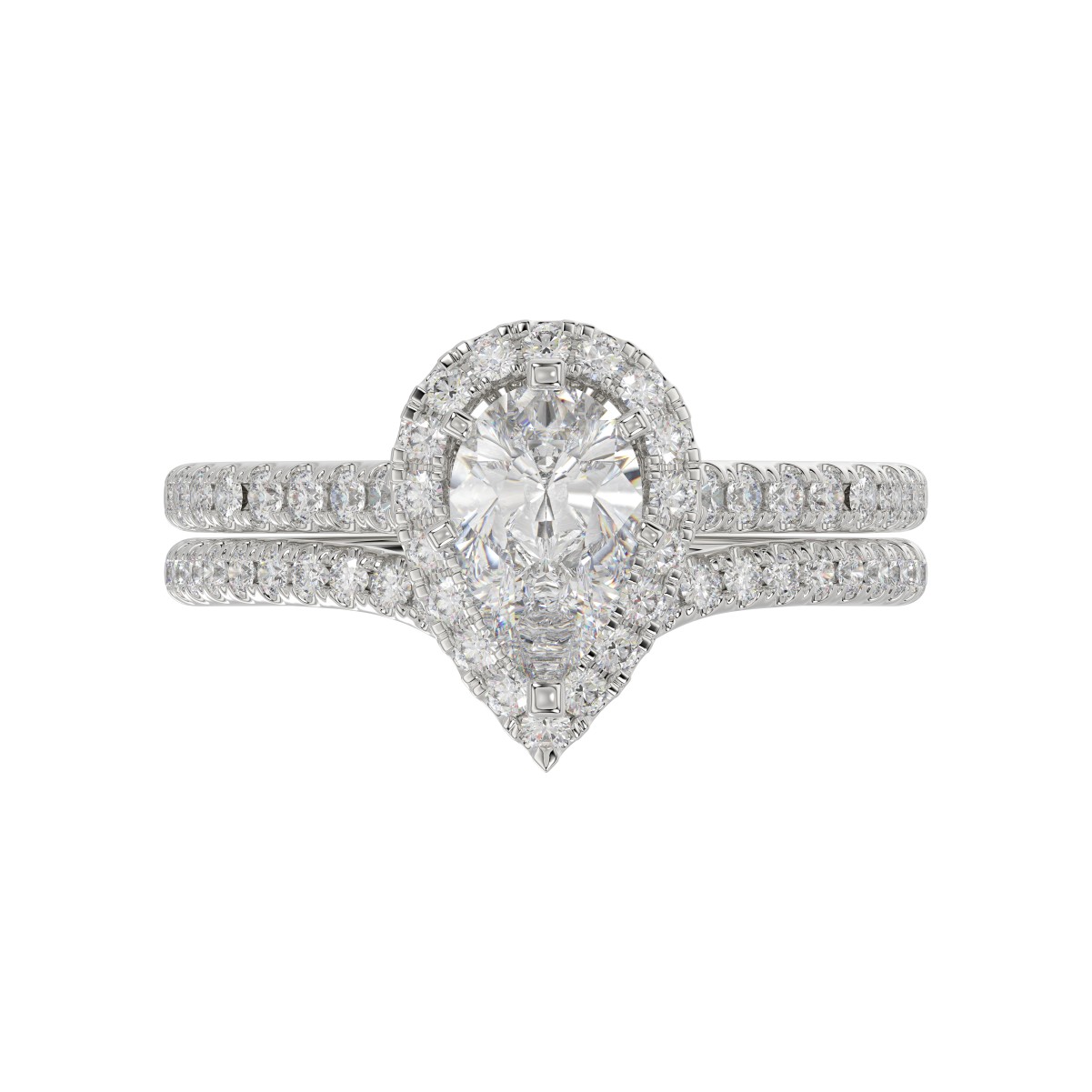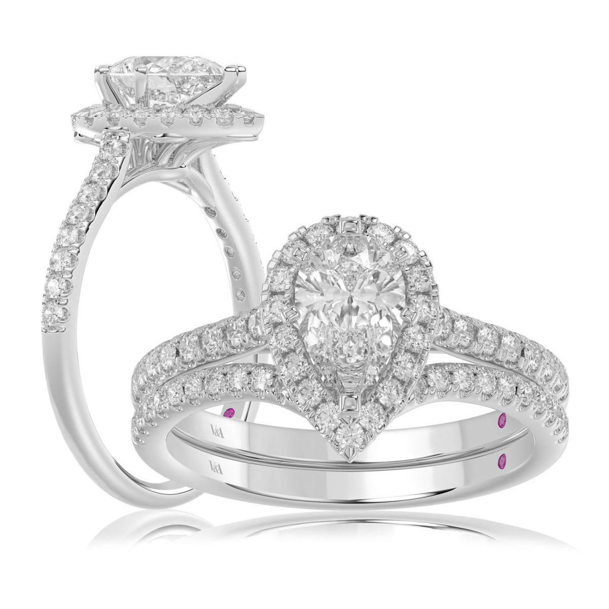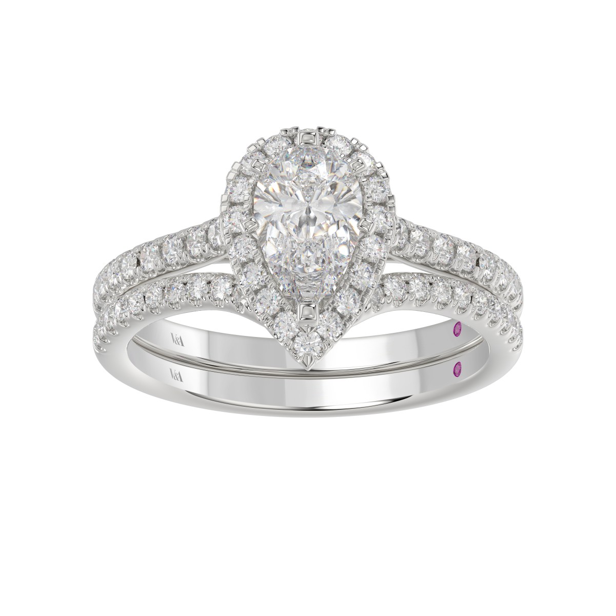 14K WHITE GOLD 1/2CT ROUND/PEAR DIAMOND LADIES BRIDAL SET(CENTER STONE MOUNT PEAR DIAMOND 1CT)