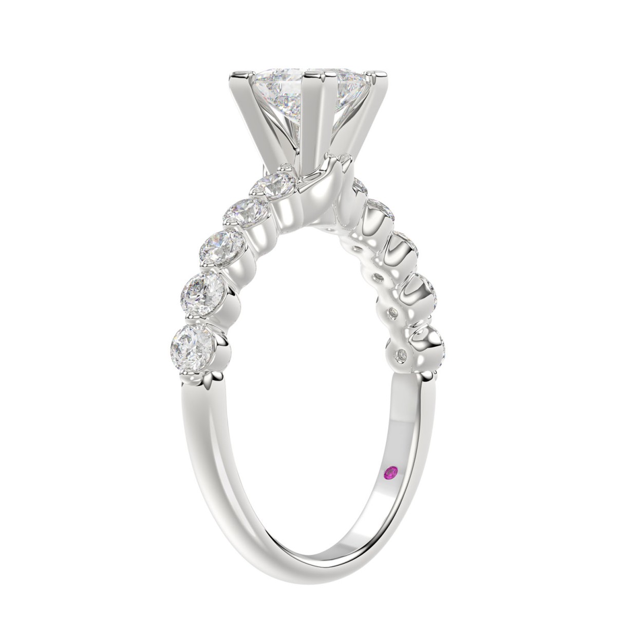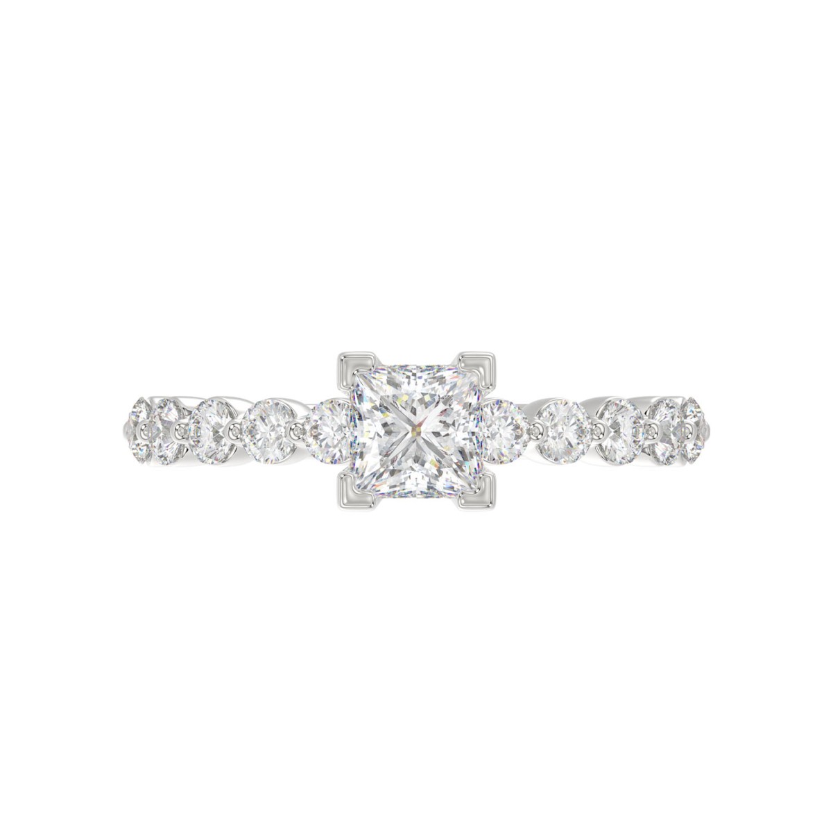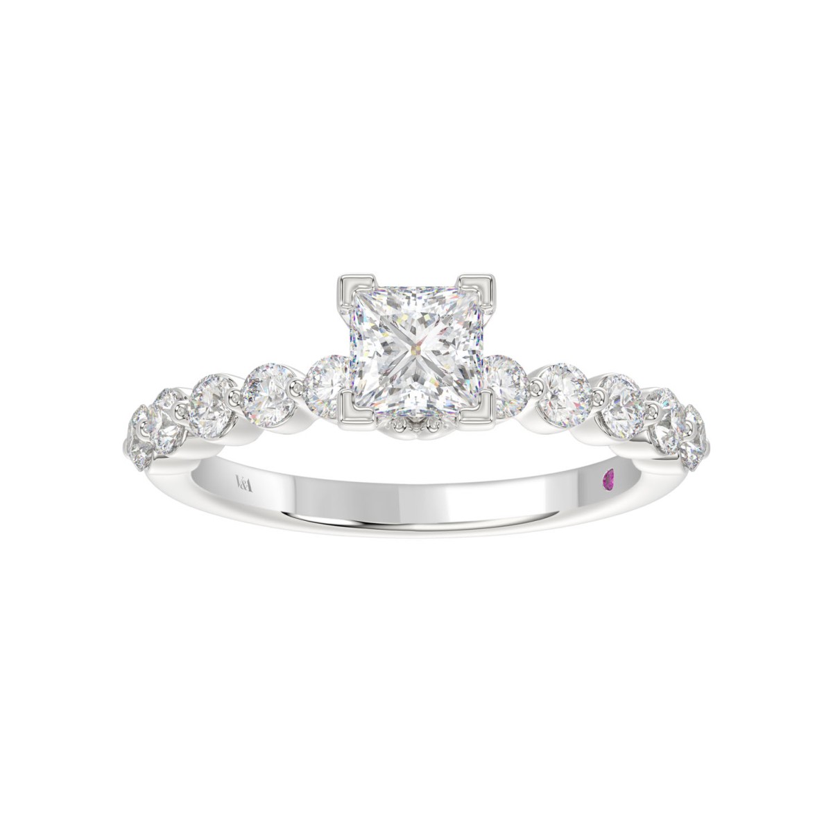 14K WHITE GOLD 1/2CT ROUND/PRINCESS DIAMOND LADIES SEMI MOUNT RING (CENTER STONE PRINCESS DIAMOND 1CT)
