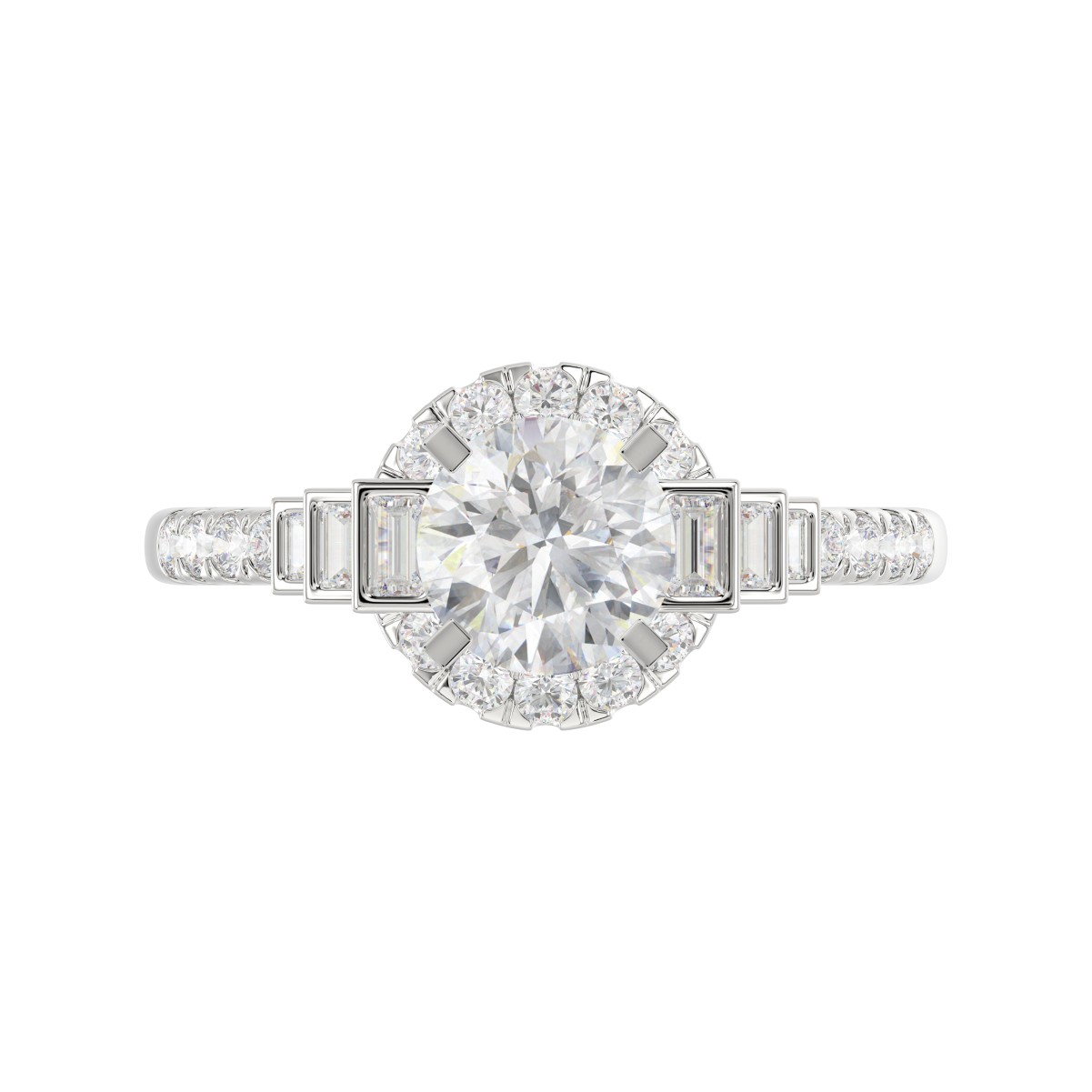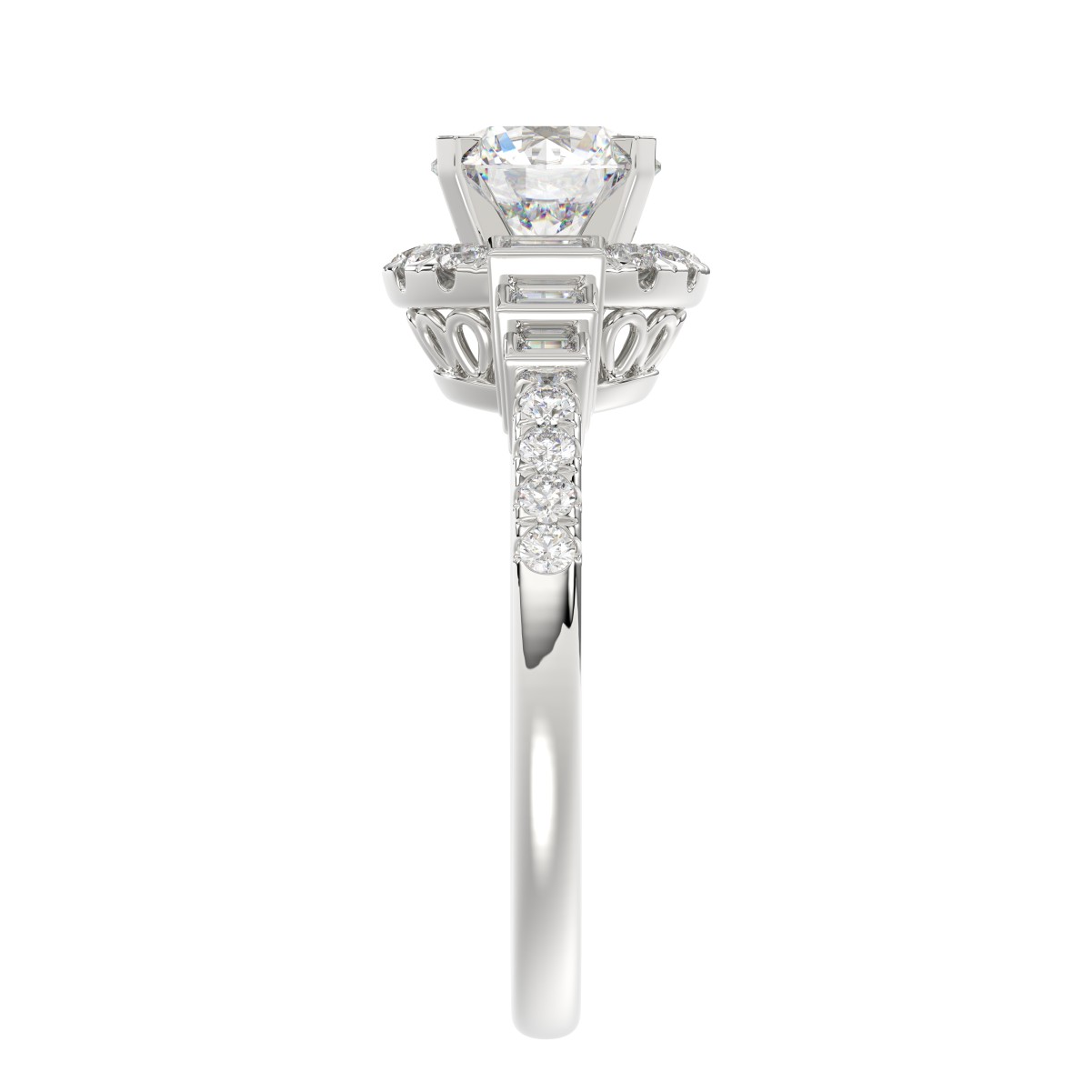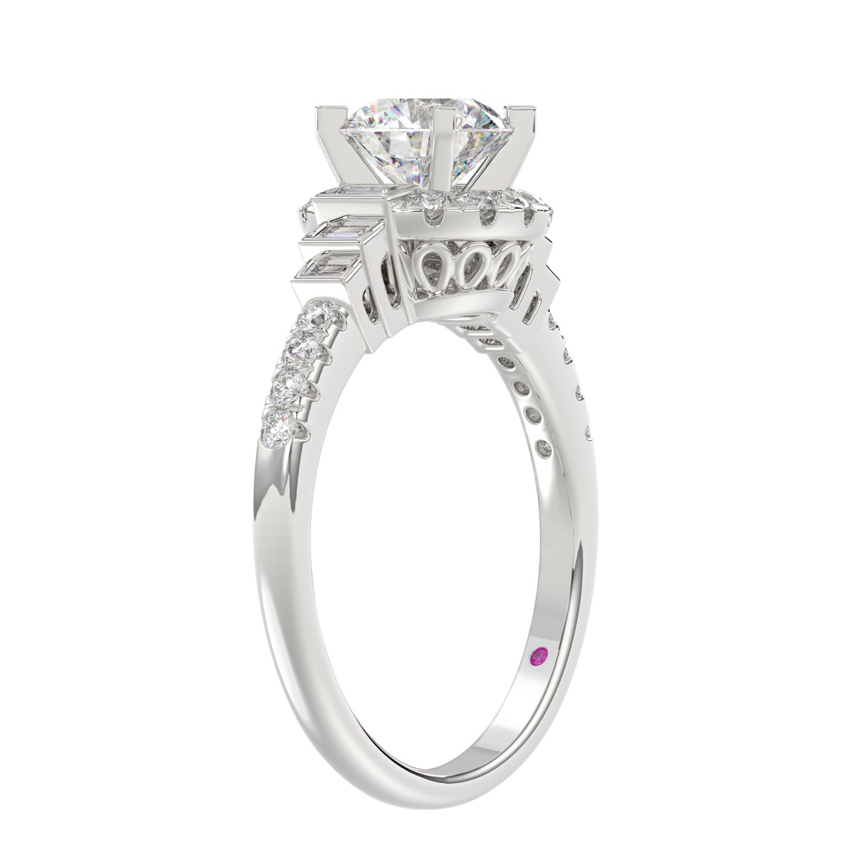 14K WHITE GOLD 1/4CT ROUND/BAGUETTE DIAMOND LADIES SEMI MOUNT RING(CENTER STONE MOUNT ROUND DIAMOND 1CT)