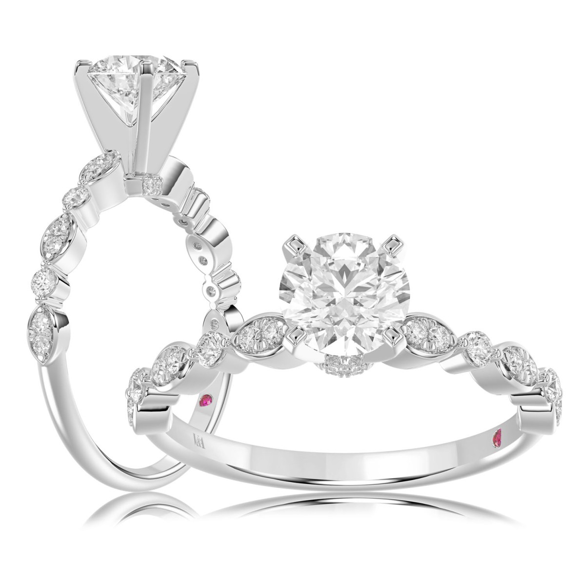 14K WHITE GOLD 1/4CT ROUND DIAMOND LADIES SEMI MOUNT RING (CENTER STONE ROUND DIAMOND 1CT)