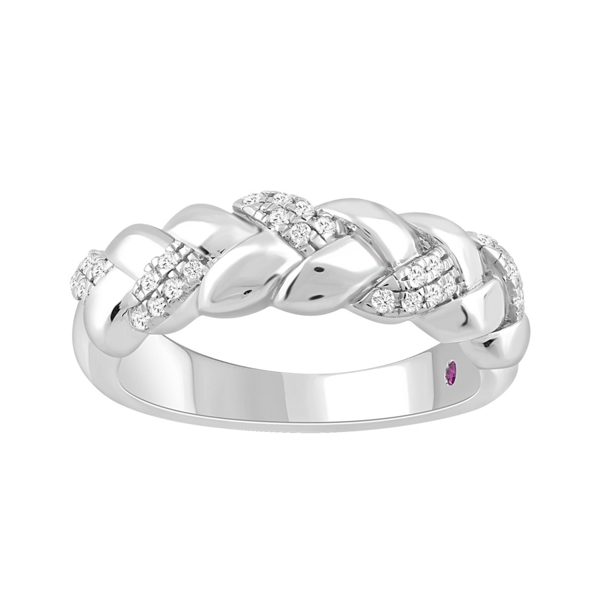 14K WHITE GOLD 1/6CT ROUND/PINK SAPPHIRE DIAMOND LADIES BAND