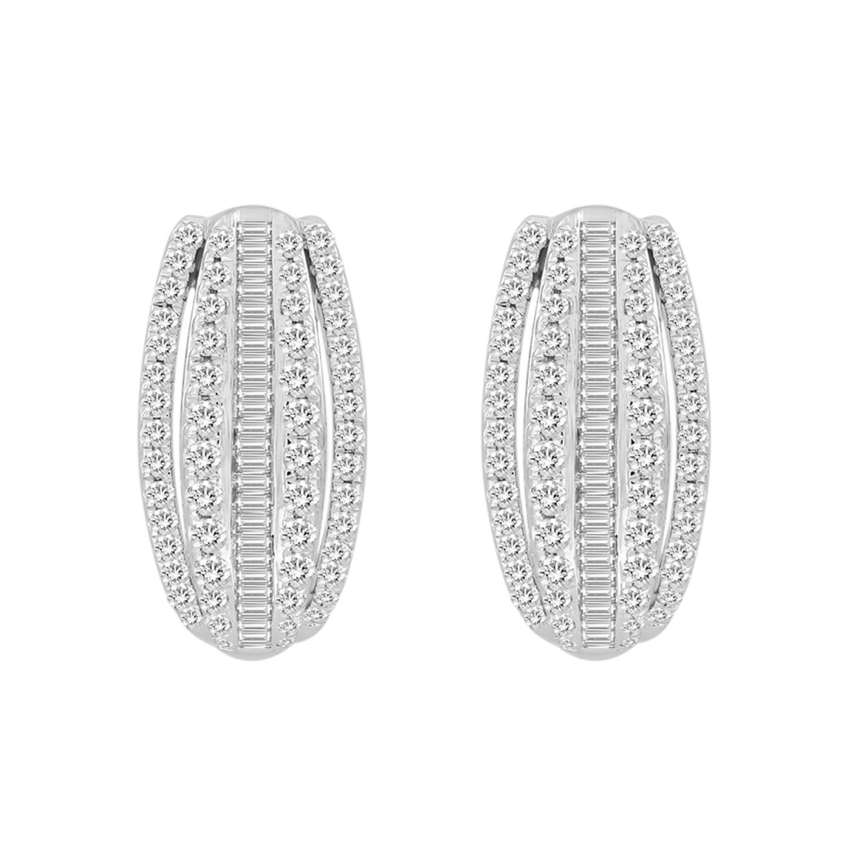 14K WHITE GOLD 1CT ROUND/BAGUETTE DIAMOND LADIES HOOPS EARRINGS