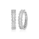 Home 14K WHITE GOLD 1CT ROUND/BAGUETTE DIAMOND LADIES HOOPS EARRINGS