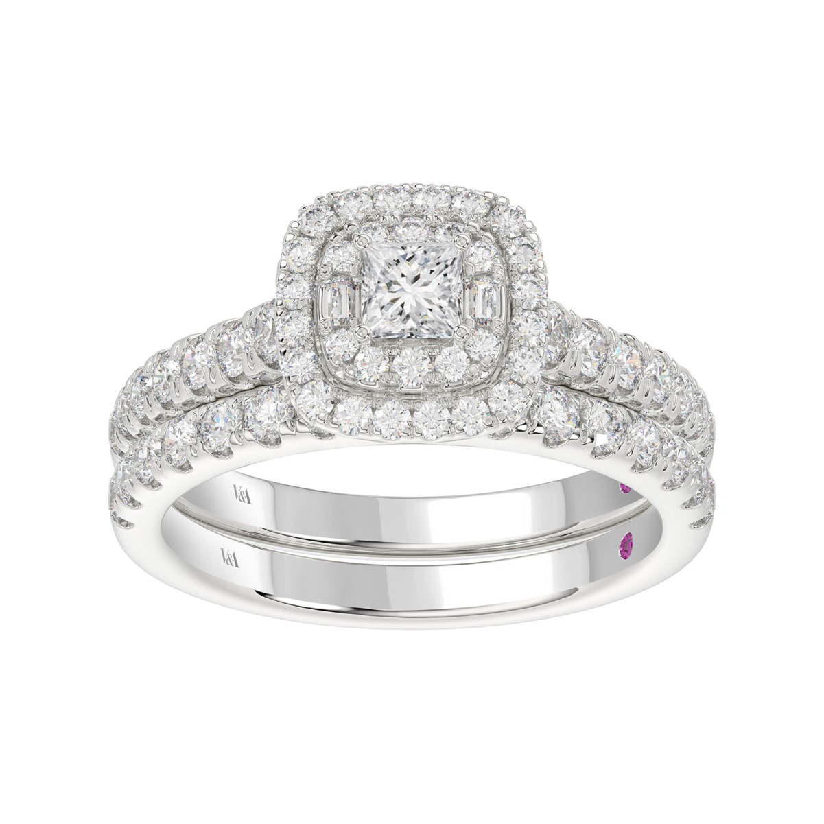14K WHITE GOLD 1CT ROUND/BAGUETTE/PRINCESS DIAMOND LADIES BRIDAL SET(CENTER STONE PRINCESS DIAMOND 1/5CT)